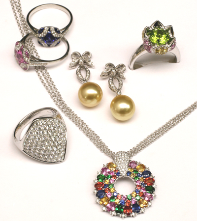 semi-precious stone jewelry in 14K, 18K (white or yellow) gold, and